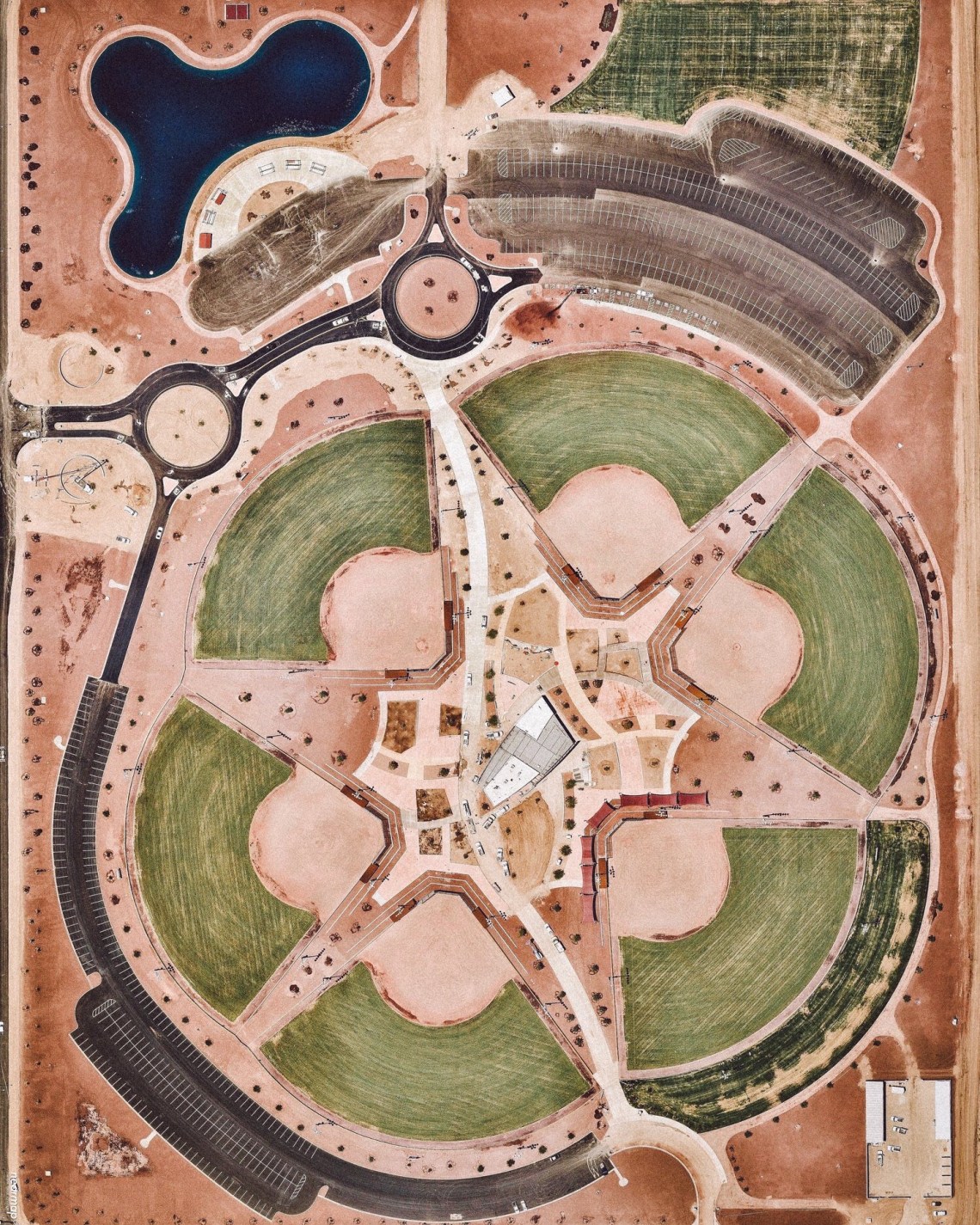 What if we see our familiar 3D world in a new perspective we’re not used to? A straight down satellite or drone shot is doing just that. This unusual view seems to flatten our world as we know it and turns it into 2D. It shows us a new more abstract view, it shows us the plan, it shows us the art! An amazing, intriguing and inspiring surprise. Cool no? We love them!