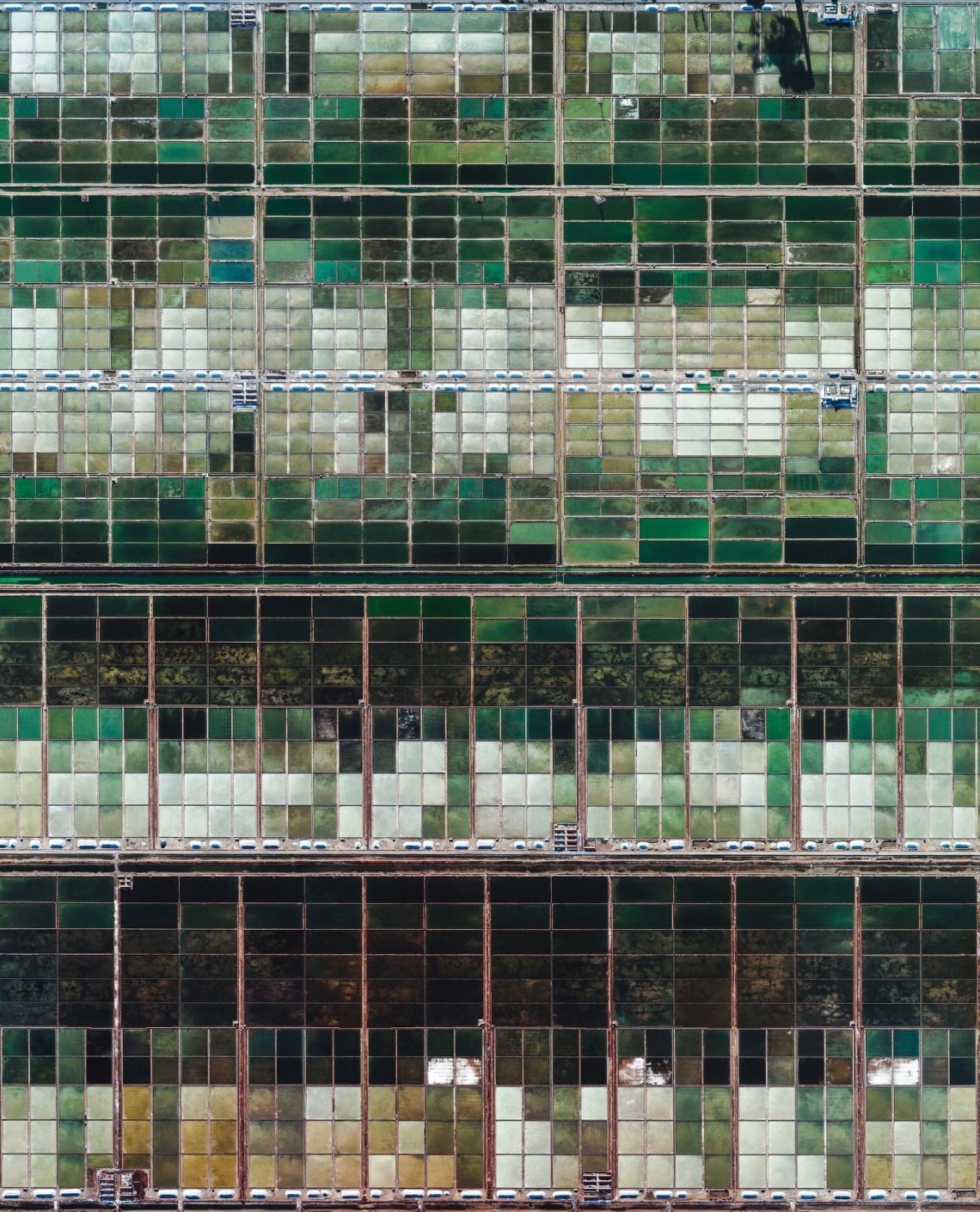 Hundreds of saltwater evaporation ponds cover the south bank of Laizhou Bay in Shandong Province, East China.
