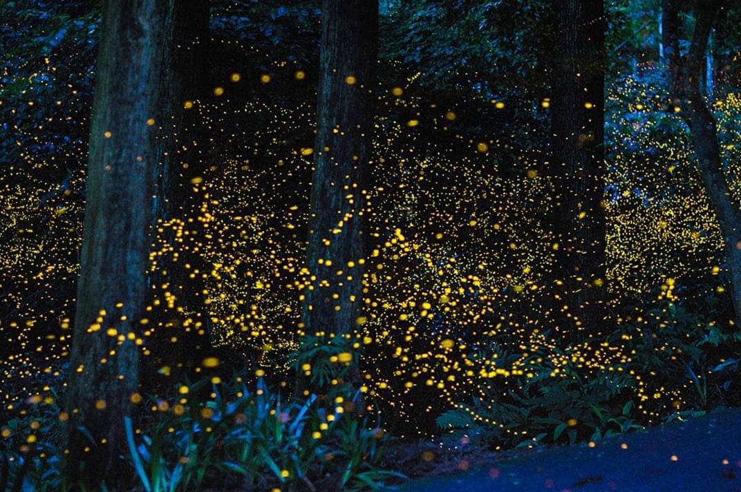 For nearly a decade, amateur photographer Tsuneaki Hiramatsu spent his summer evenings in the forests outside Niimi, in Japan’s Okayama prefecture. He was intent on capturing the spectacle of firefly mating season, when the males and females vie for attention through blinking codes. As night fell, Hiramatsu began shooting a series of eight-second exposures. He then digitally merged the images, creating connect-the-dot photos of the fireflies’ golden flight paths. The images became a sensation on the Web and were included in a traveling museum exhibit called “Creatures of Light: Nature’s Bioluminescence.” But for Hiramatsu, recognition for his artistry is secondary to engendering appreciation for the natural world. “Fireflies are little seen in areas developed by human beings,” he says. “When I feel the splendor and mystery of nature, I am glad to have everyone share that feeling.”