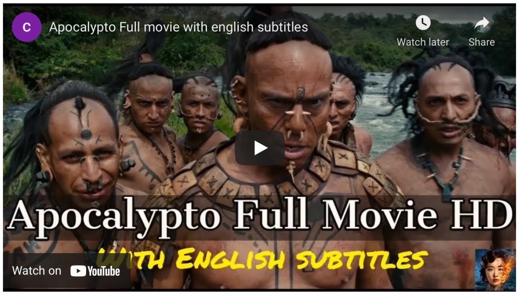 Inspire stuff botoxwp8 April 20218 April 2021Inspire stuff, video Post navigation PreviousNext https://youtu.be/-k9z09JCfIk Amazing movie! Apocalypto – full movie, English subtitles. Share this: Click to share on X (Opens in new window) X Click to share on Facebook (Opens in new window) Facebook Like Loading...