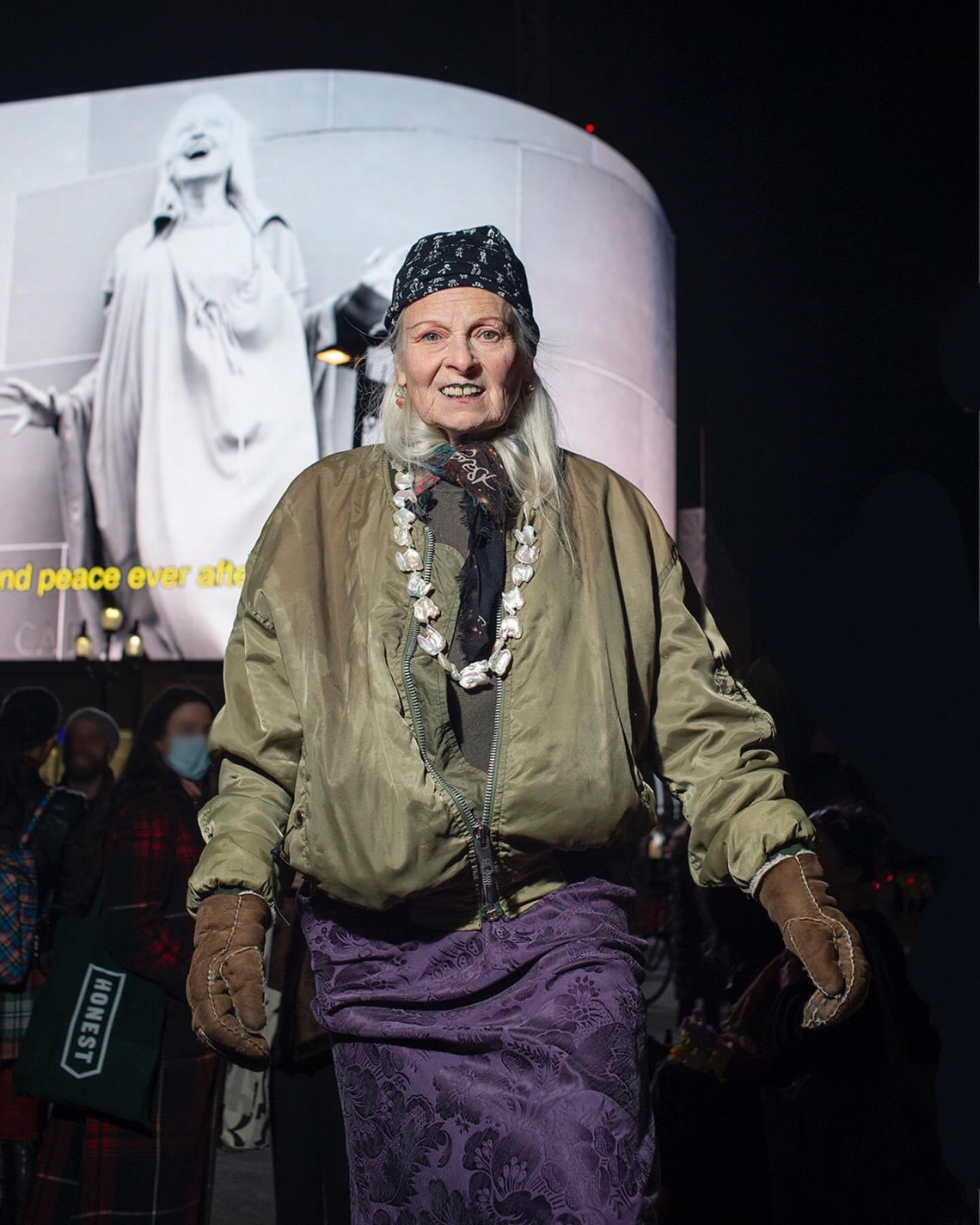 How do you plan to spend your 80th birthday? Vivienne Westwood celebrated hers last night in the middle of London’s Piccadilly Circus, watching herself on a giant advertising hoarding delivering a message to the world: Stop the arms trade. Stop war. Stop climate change.