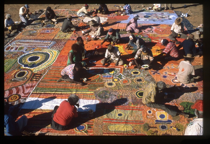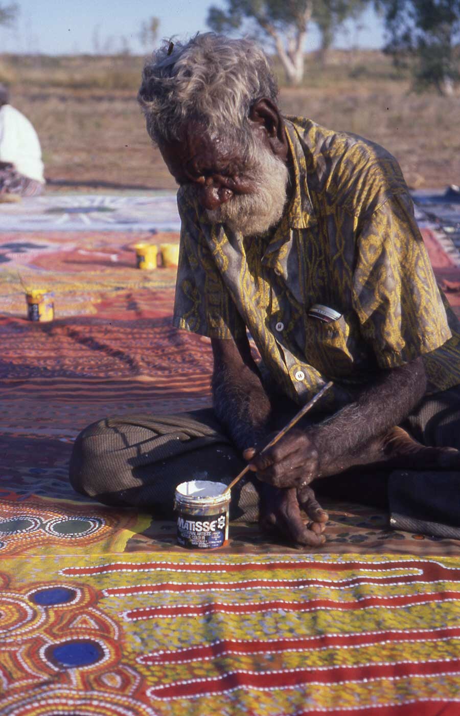 The idea of painting the canvas was that of Ngarralja Tommy May’s: “… we were wondering how to tell the court about our country. I said then if kartiya [Europeans] can’t believe our word, they can look at our painting. It all says the same thing. We got the idea of using our paintings in court as evidence.”