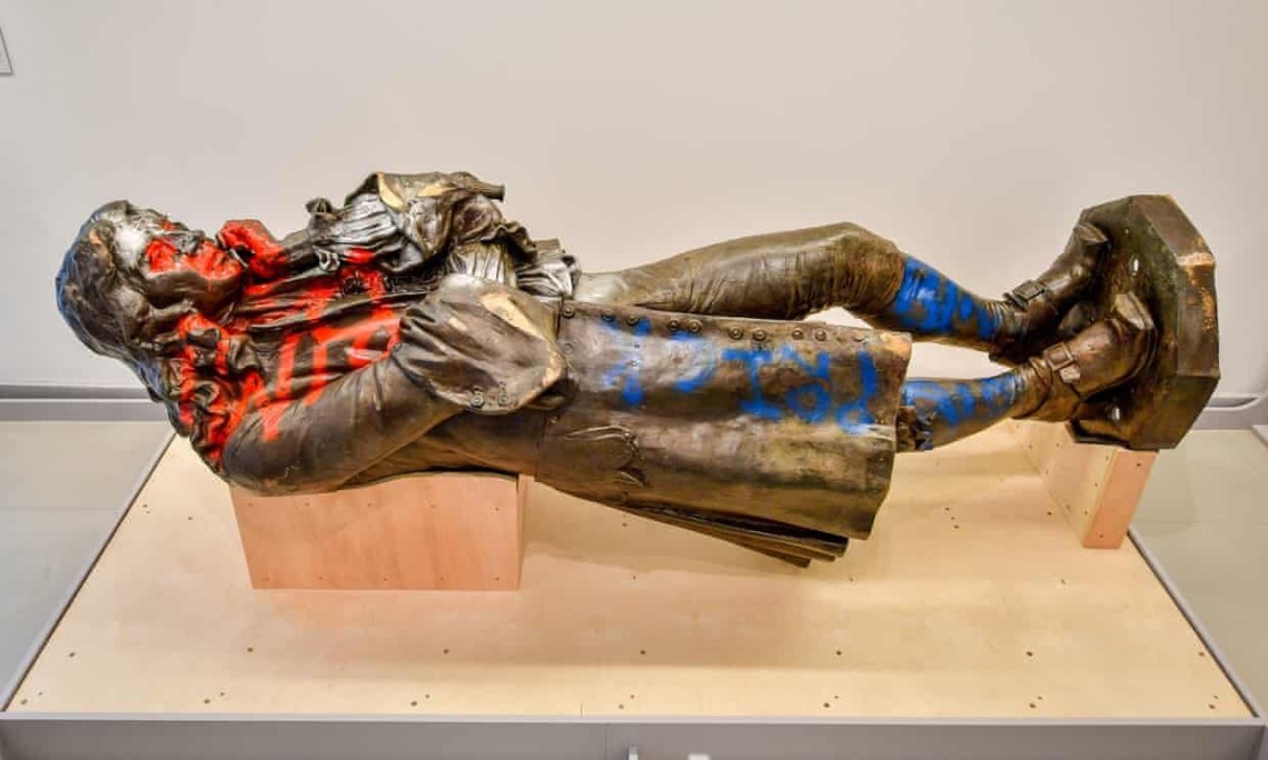 Banksy whished this was a Banksy! Amazing artwork that tells it all. The statue of Bristol slave trader Edward Colston, which was retrieved from Bristol harbour after being toppled during a Black Lives Matter protest in June 2020, is back on display in the city’s M Shed museum. Photograph: Ben Birchall/PA
