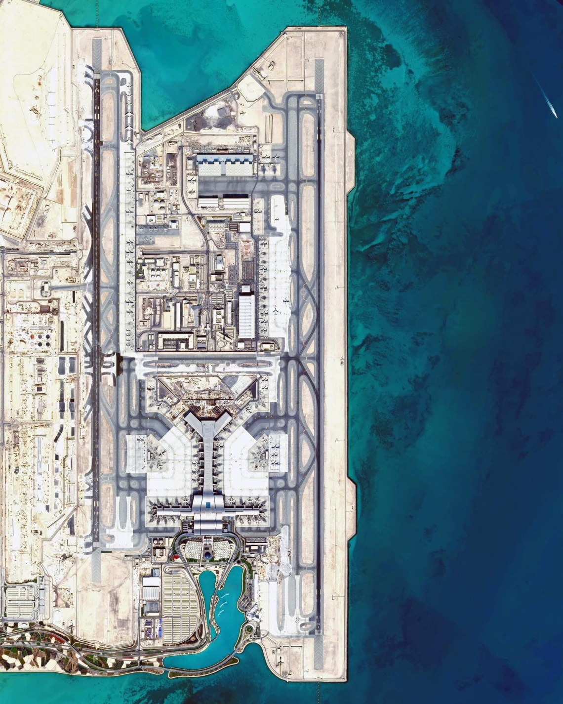Hamad International Airport is the sole international airport in the state of Qatar. Located in Doha, it covers 8.5 square miles (22 square km) along the Persian Gulf, half of which is on reclaimed land. Hamad Airport opened in 2014 and handled more than 38.8 million passengers in 2019.