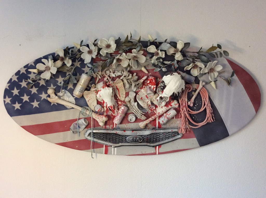 Bring Me The Horizon! Flags, bones, rope, flowers, paint and trash.